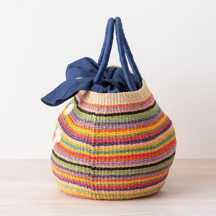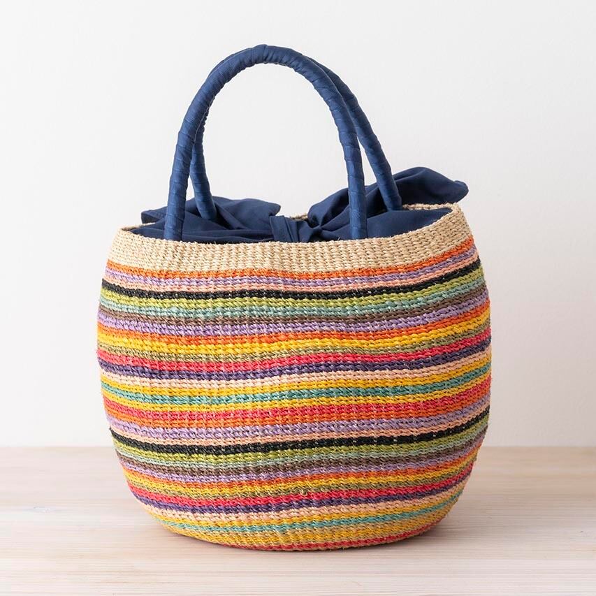 持つ人も、見かけた人も笑顔にする、アジョリーのかごバッグ。レインボーカラーのようなマルチが仲間入りです。