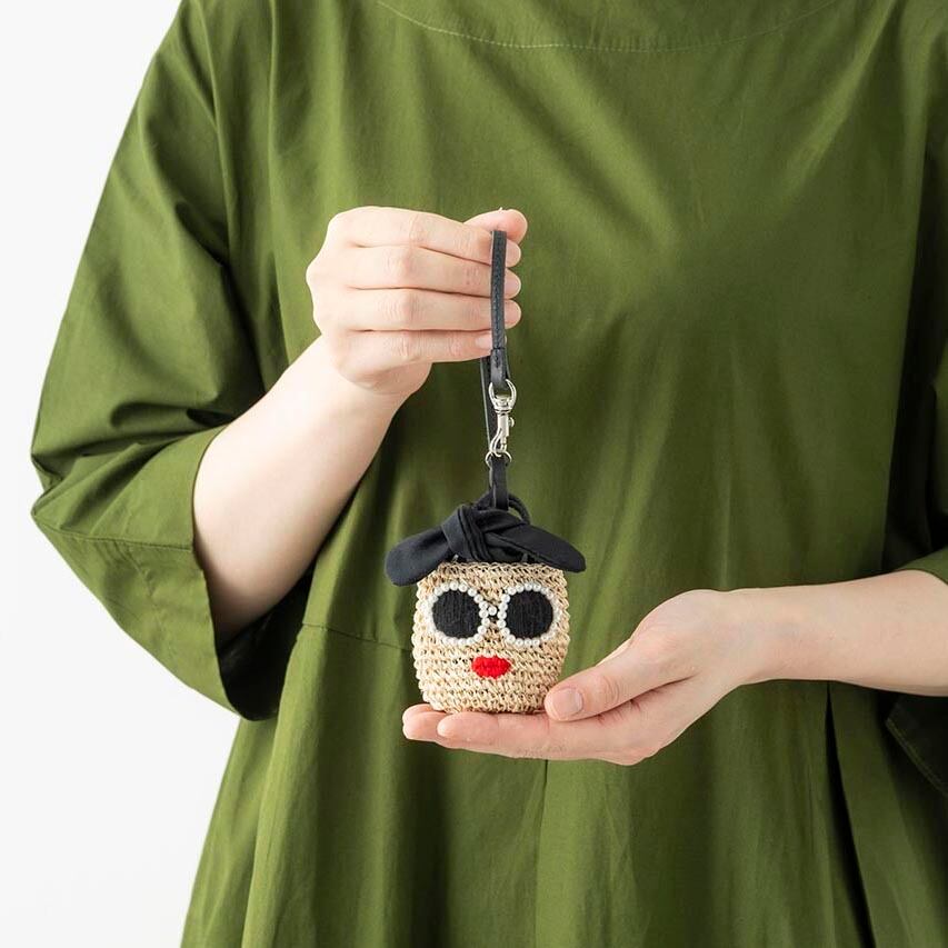 誰もが思わず笑顔になるデザインが魅力。フィリピンで栽培された天然素材のアバカ(マニラ麻)を使用し、フィリピンの島々で職人がひとつひとつ丁寧に手編みをしています。職人によって編みの力の入れ方が異なるので、編み具合によってサイズや顔の表情が微妙に異なることも。その違いは伝統工芸の1点もの同様に個性として楽しめます。