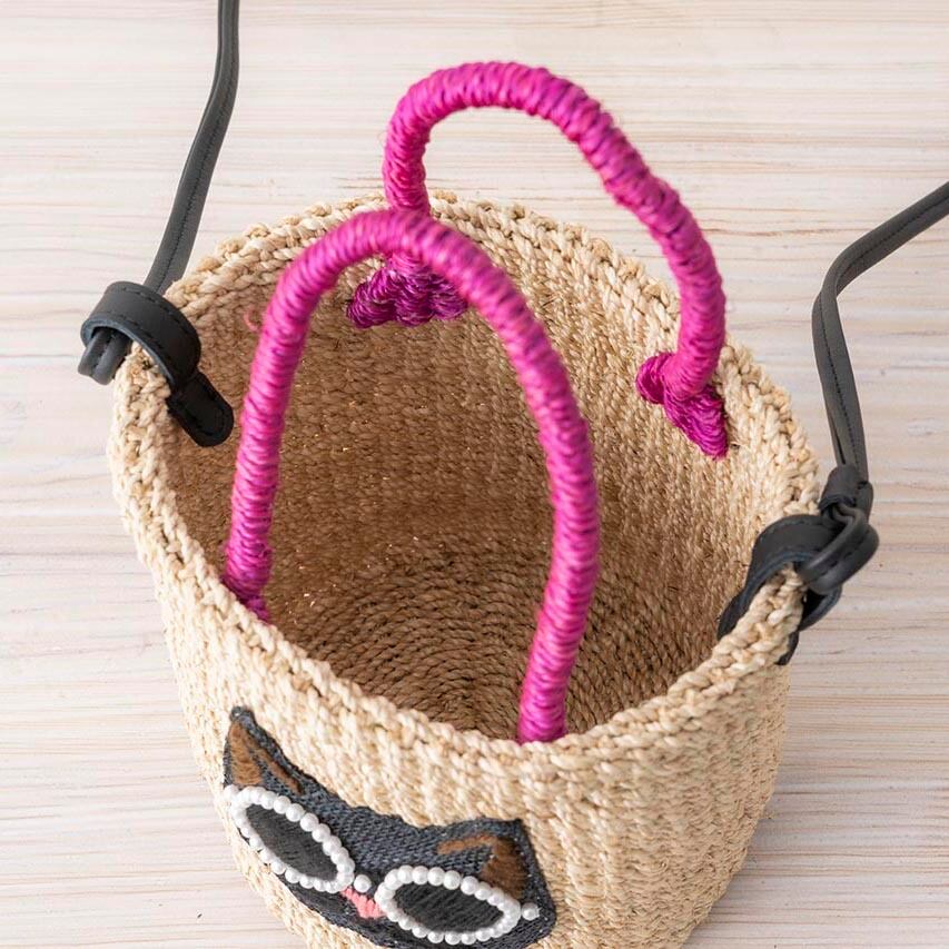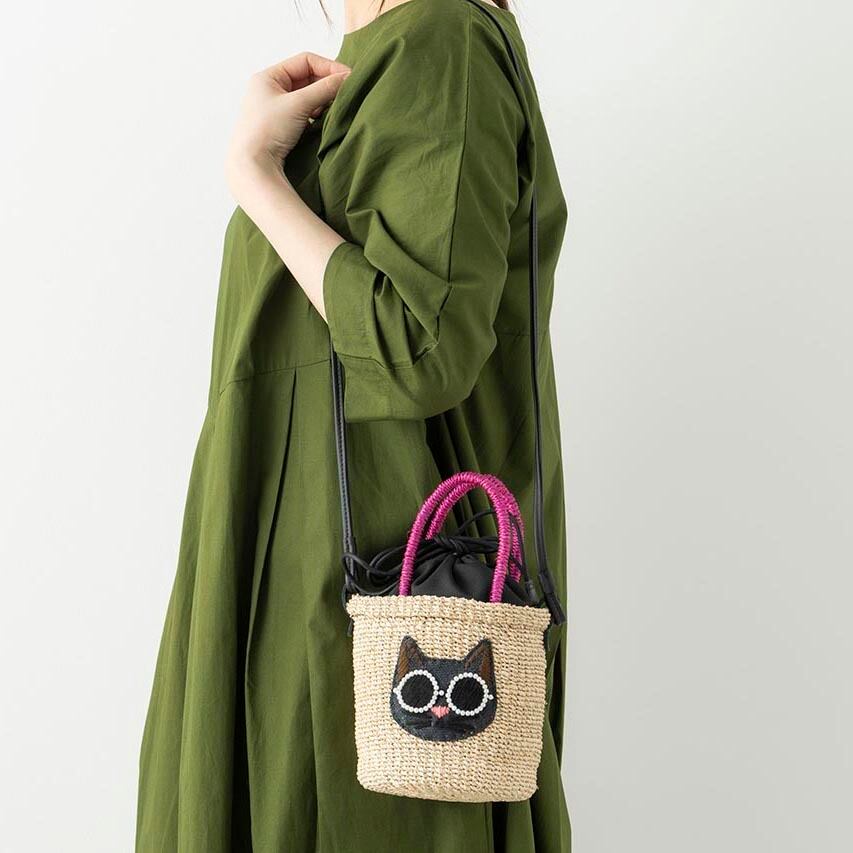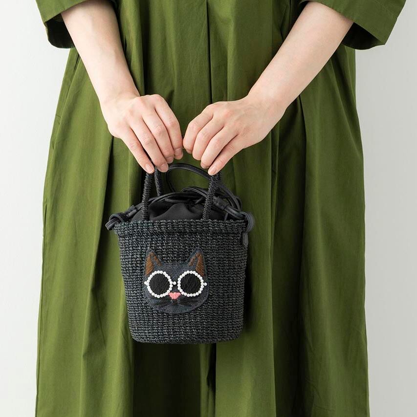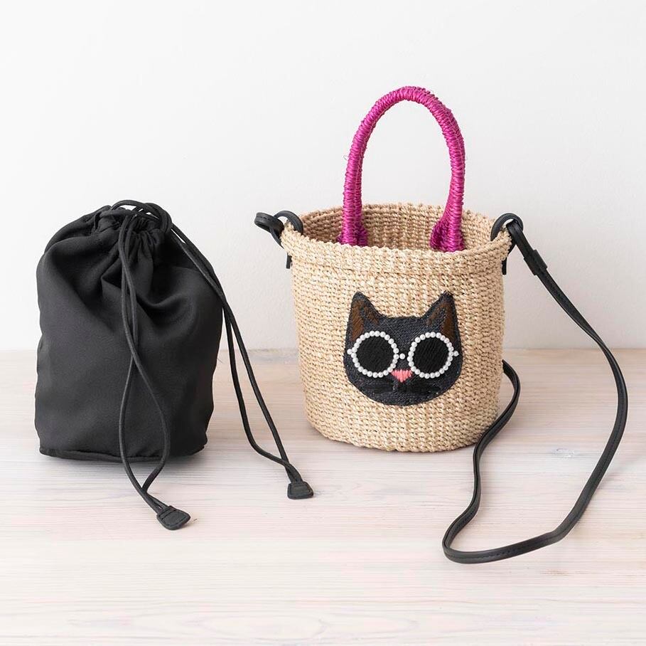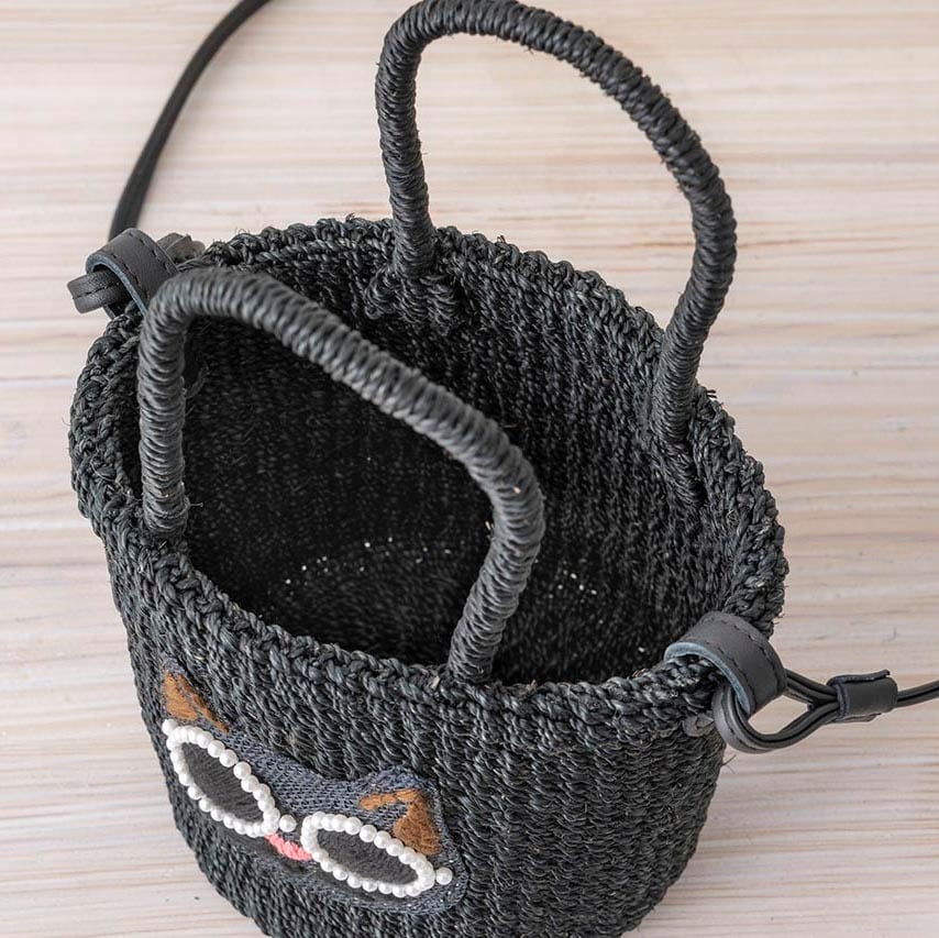 「わあ、可愛い!と必ず褒められる「アジョリー」のかごバッグ。パールサングラスが特徴のシリーズで、猫ちゃんも犬ちゃんもまた可愛いですね!