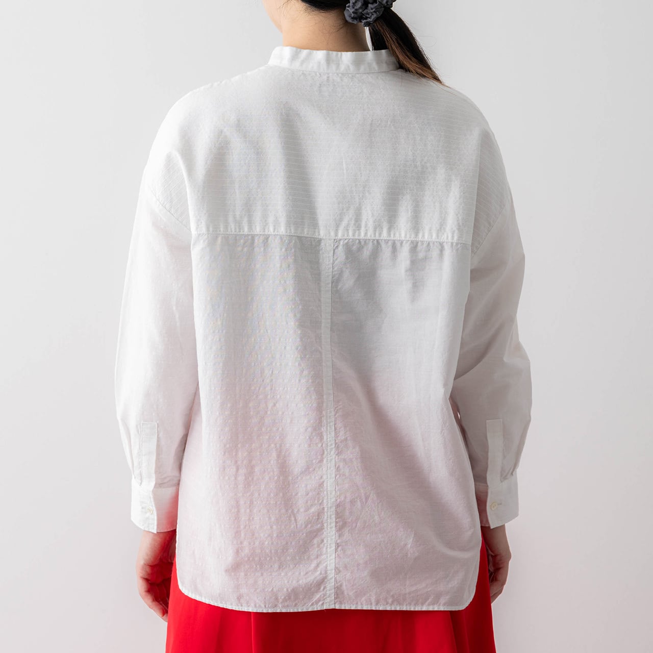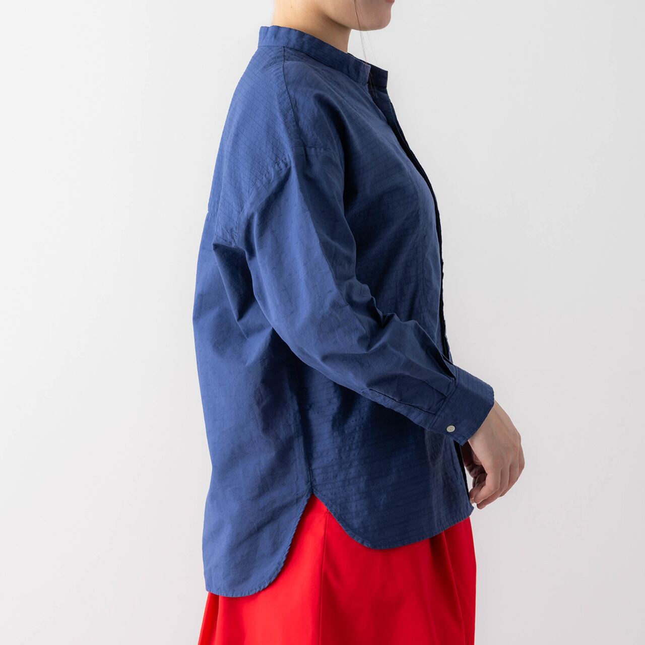 「清潔感のある白シャツは何枚あっても、またほしくなります。リムホームのシャツは素材が肌に心地よく、気軽に着られるのがいいですね。ネイビーも白や柄のボトムスと合わせて、すっきり着こなしたいです」