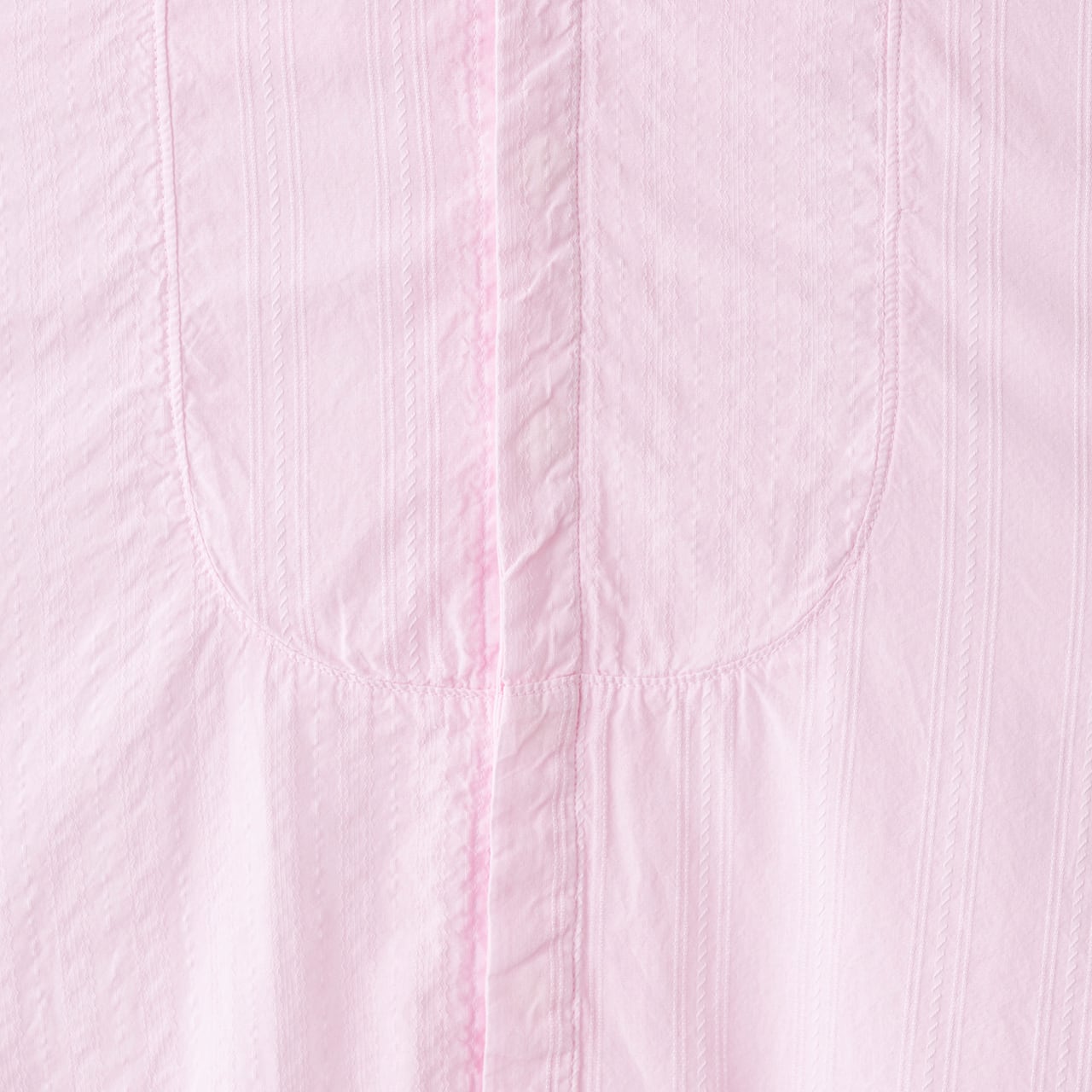 上品なフロントデザインの前身ごろと背中の切替部分は、よく見ると2種類の生地が交互に配置されています。