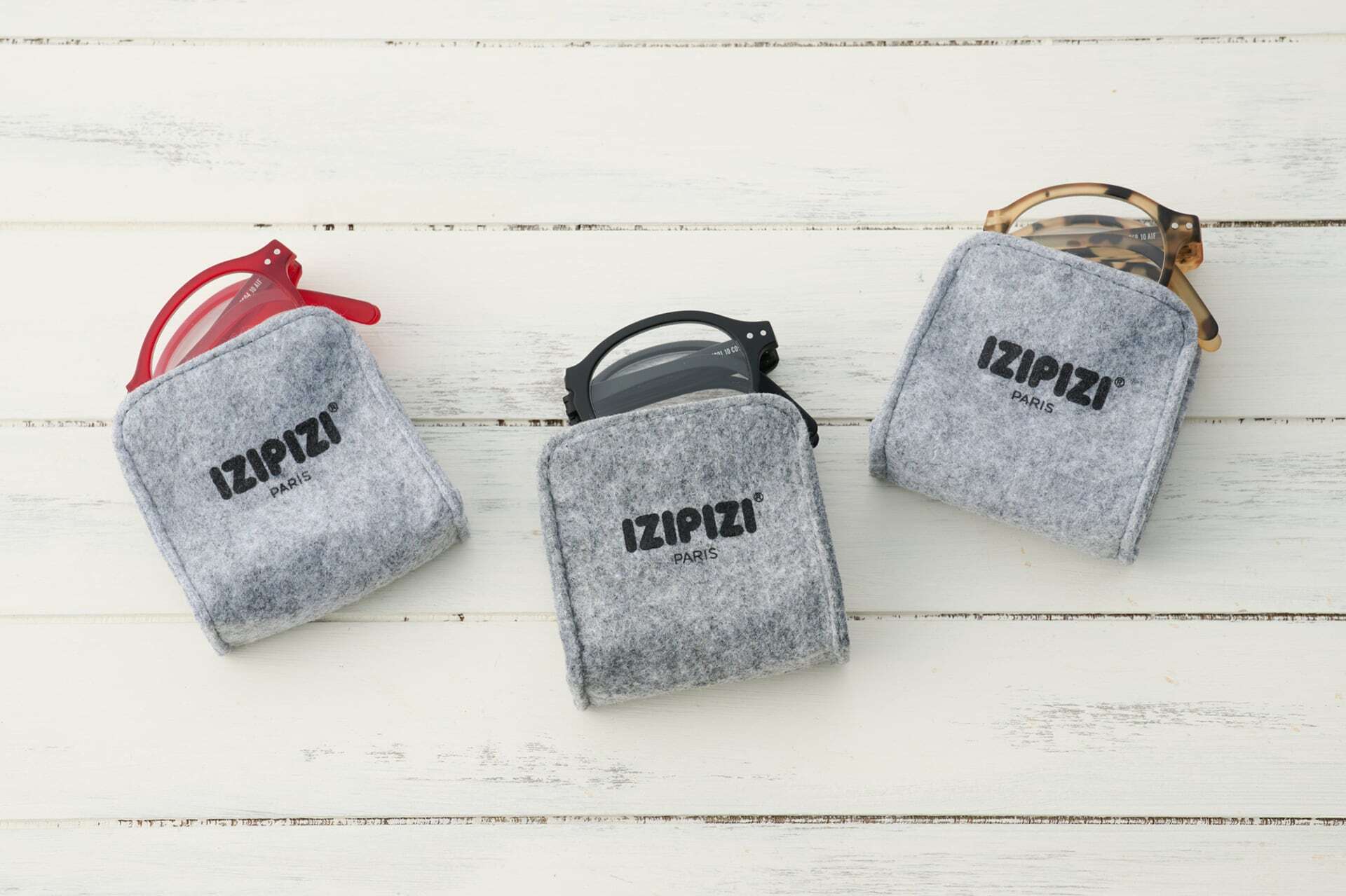 IZIPIZIの眼鏡類はどれもフェルトの専用ケースと化粧箱入りです。