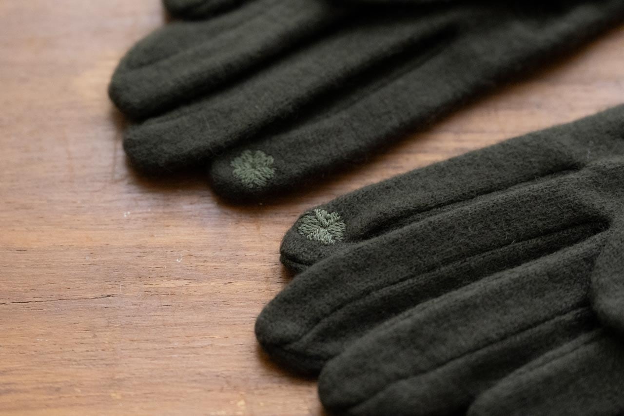 手首の折り返し部分とステッチは差し色が使われ、カラーアクセントに。サイズはFREEサイズで、若干の伸縮性があるので手に程よいフィット感があります。