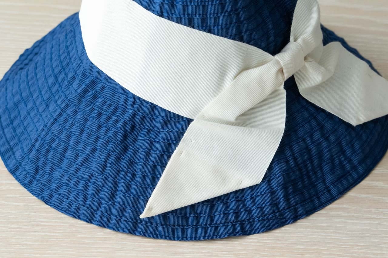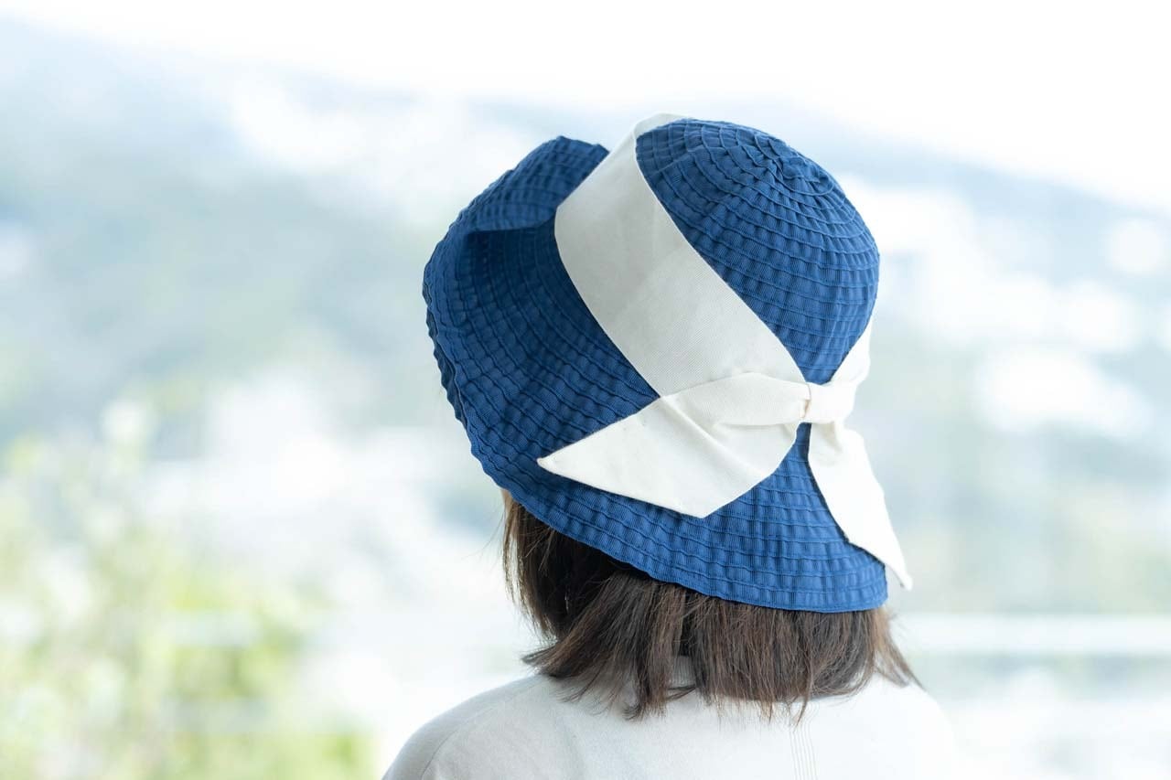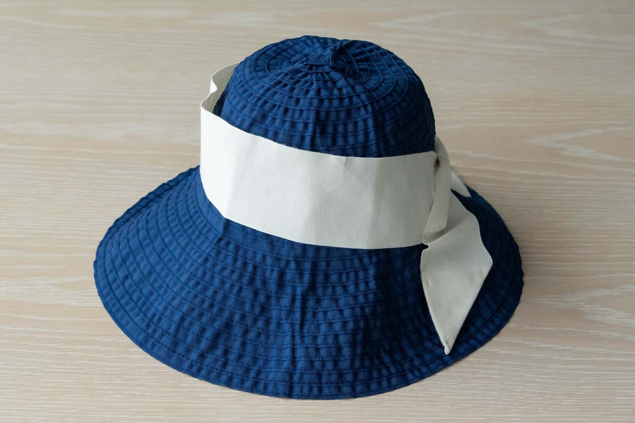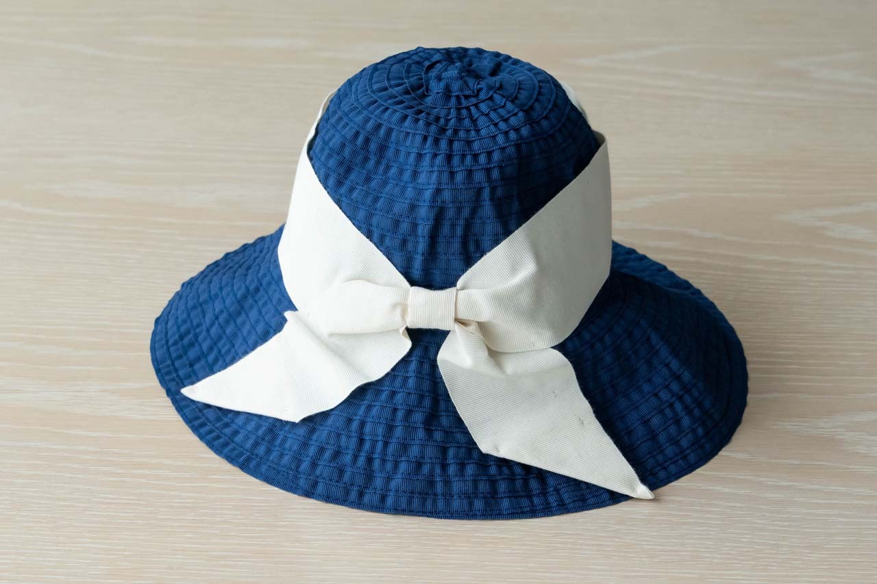 ネイビーには白のリボン。凛としたすっきりしたカラーで、涼し気な印象に。