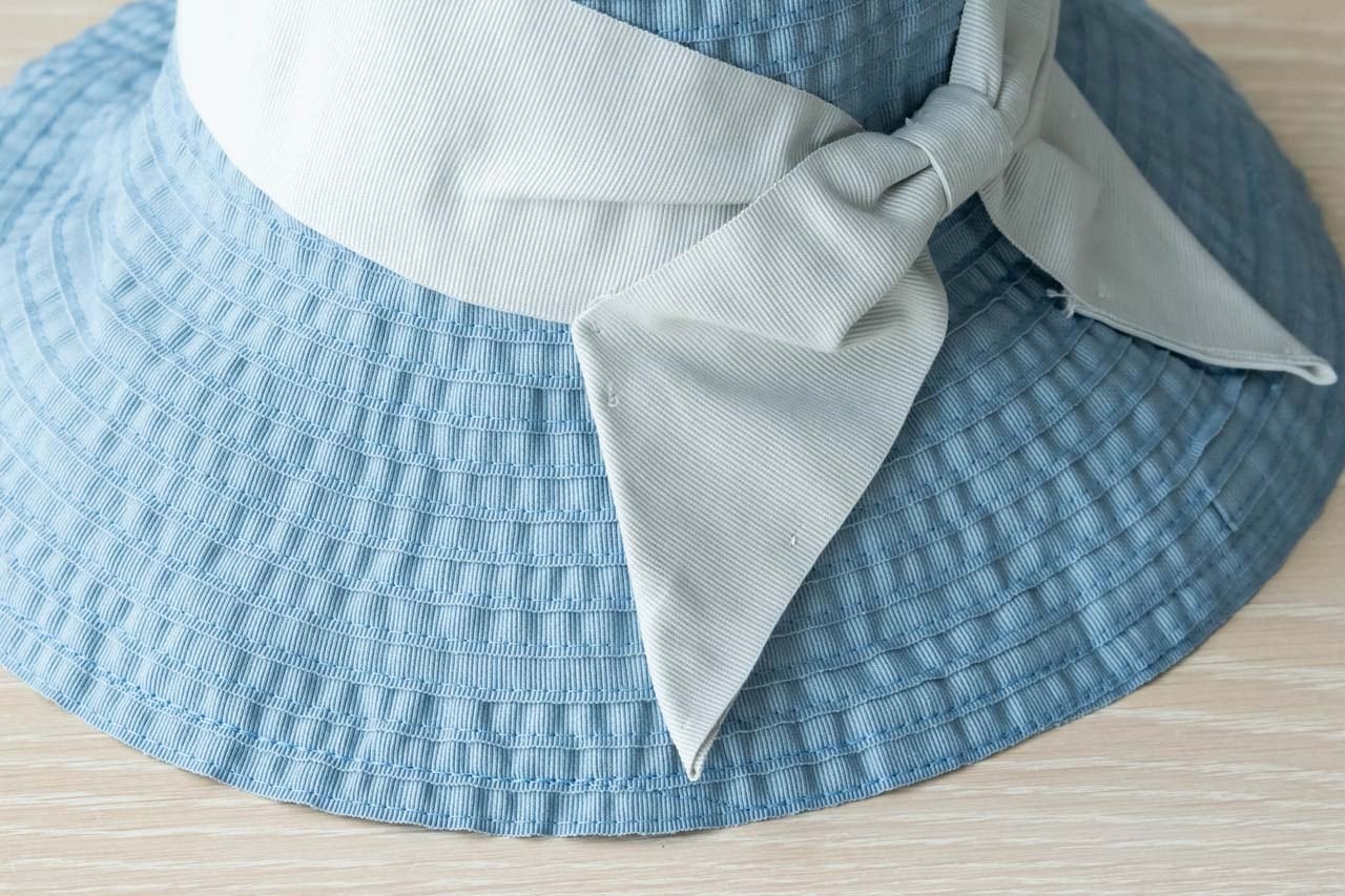 ブルー(水色)にも白のリボン。さわやかな組み合わせは、白やデニムのコーデに!