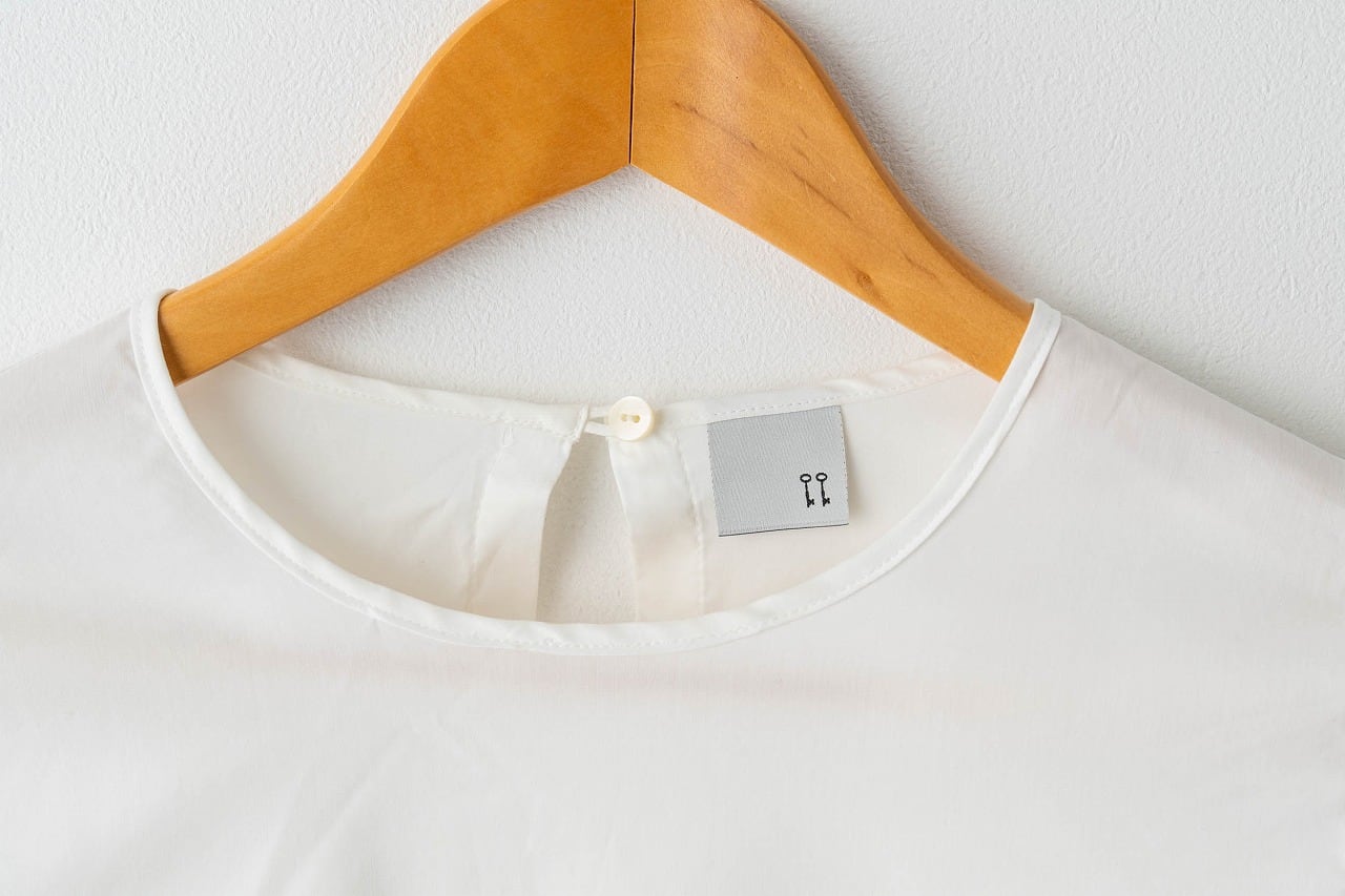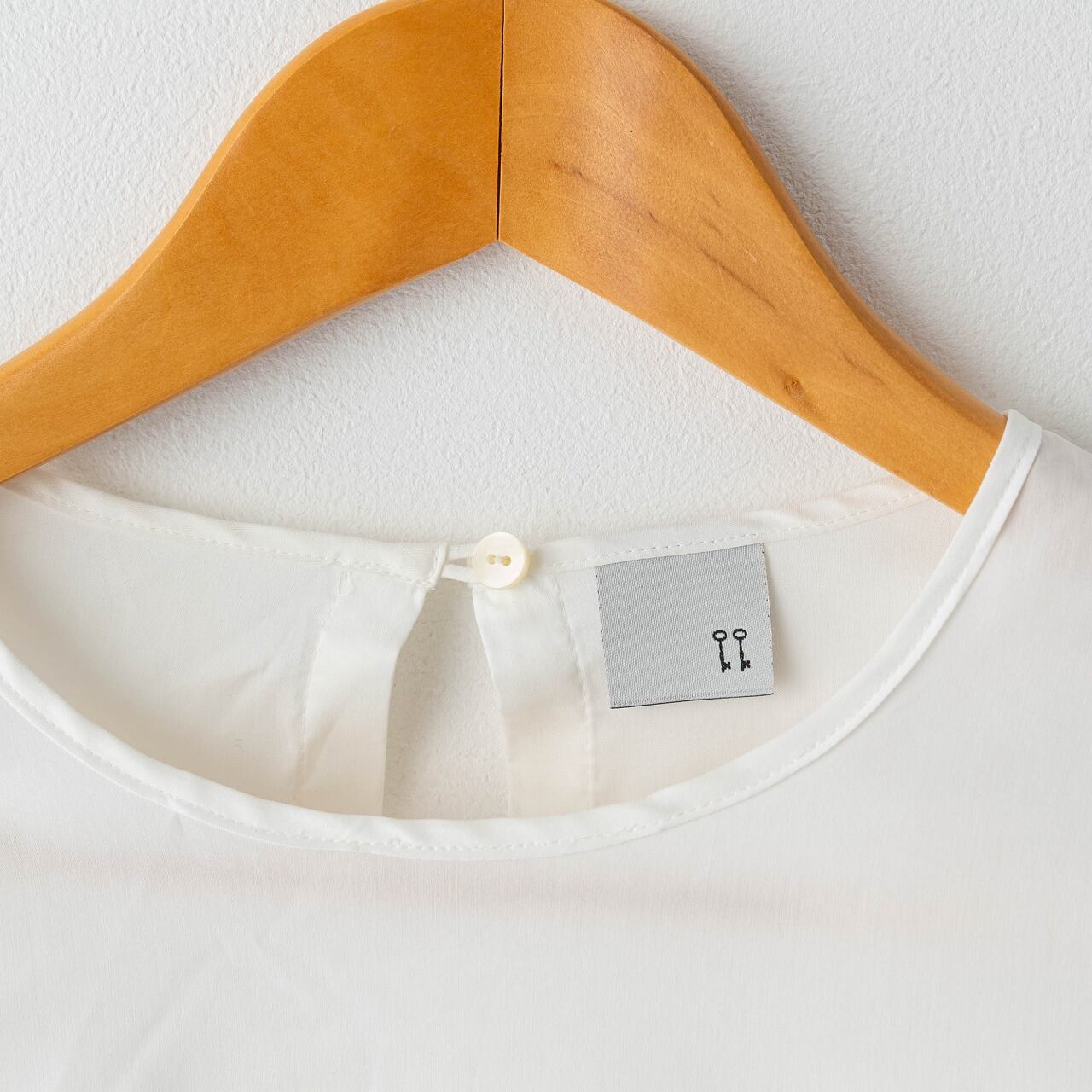背中のスリットは、おしゃれ感と風通しのよい機能も。何度も着ている間に着心地のよさの工夫を実感できます。タグのマークは、カギが二つ。フランス語でアヴェクデュクレ(avec deuxclef)です。