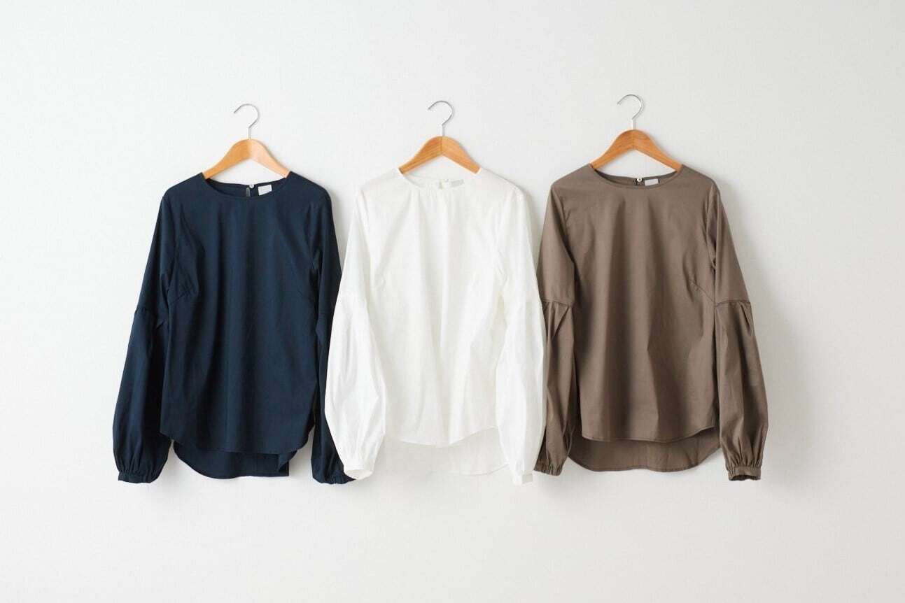 カラー展開はホワイトのほかにカーキブラウン、ネイビー。中村江里子セレクション Avenue du KIKI 限定オリジナルカラーの3色をご用意しました。真夏以外の3シーズン、大活躍する大人可愛いブラウスです。