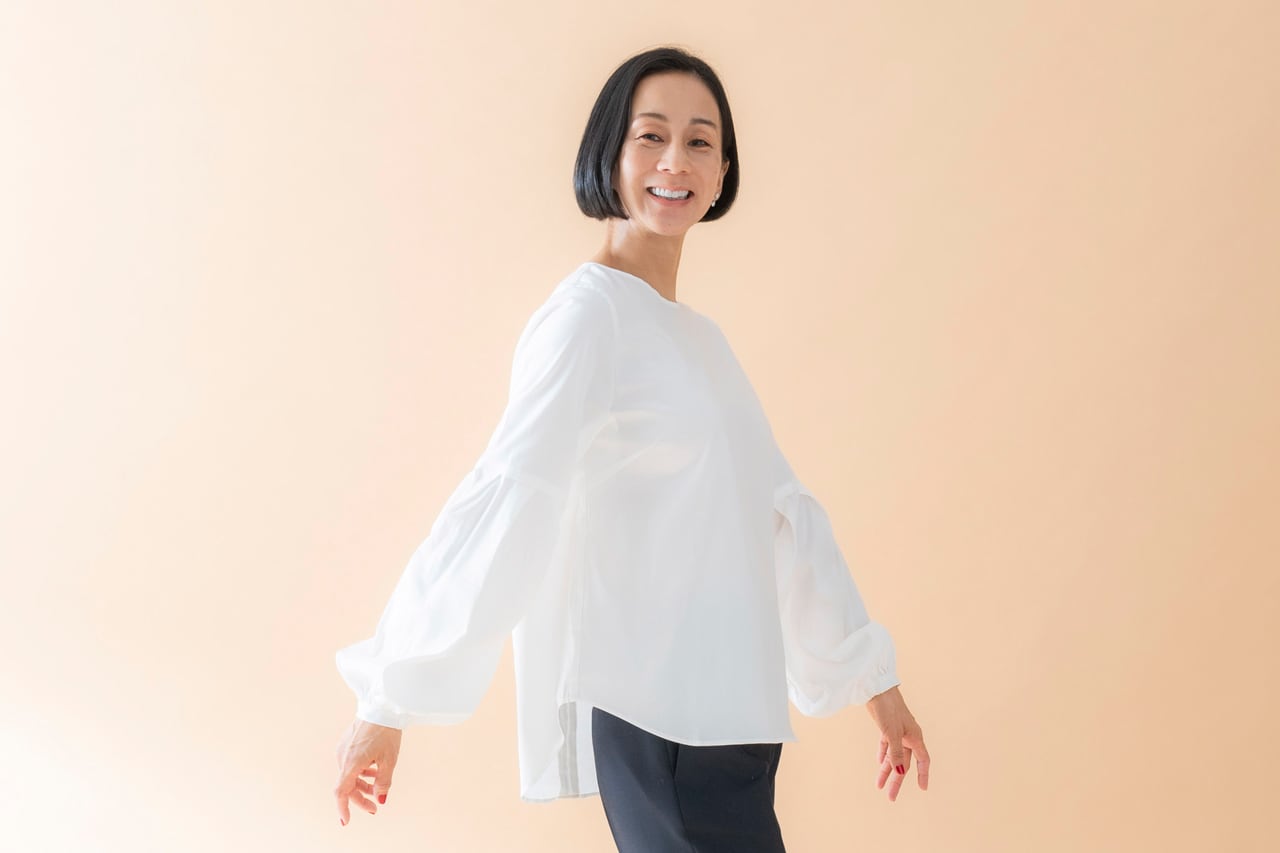 ※江里子さんが着用されているこちらのブラウス(ホワイト)のサイズはSです