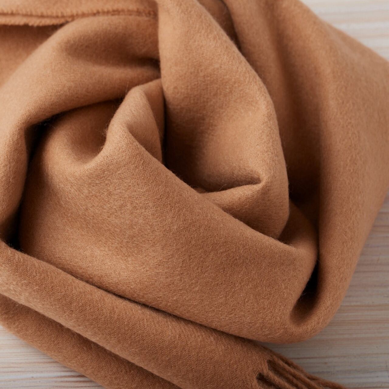 最初は薄く感じるかもしれませんが、使い込んでいくうちに厚みと柔らかさが増し“風合いを育てる”ことを実感できます。深喜繊維のお客様には20年、30年使っている方がいらっしゃるほど。長く愛用できるのが高品質なカシミヤの魅力です。