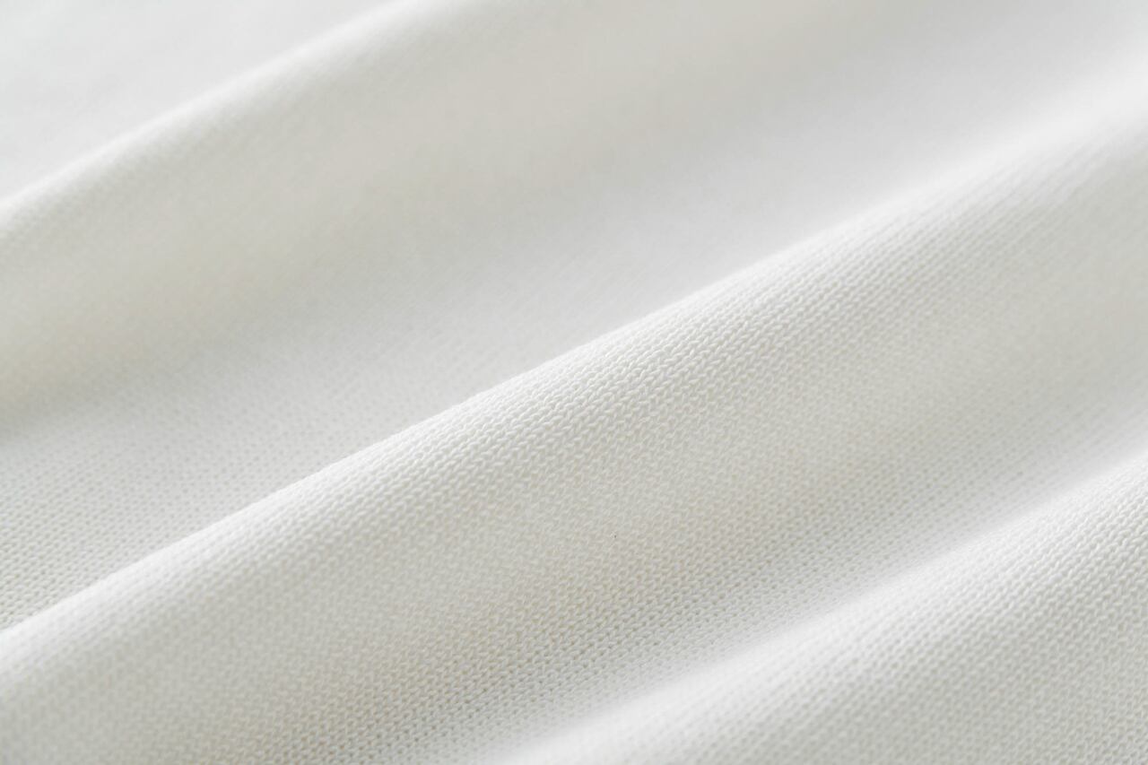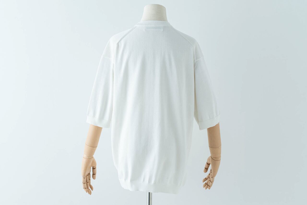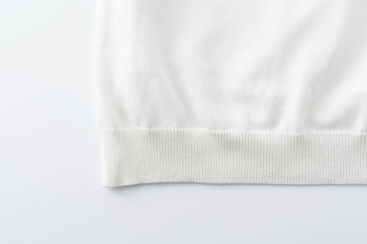 上質なコットン糸で編まれているので、着用時の肌触りもよく、素肌のうえに着たいほど。