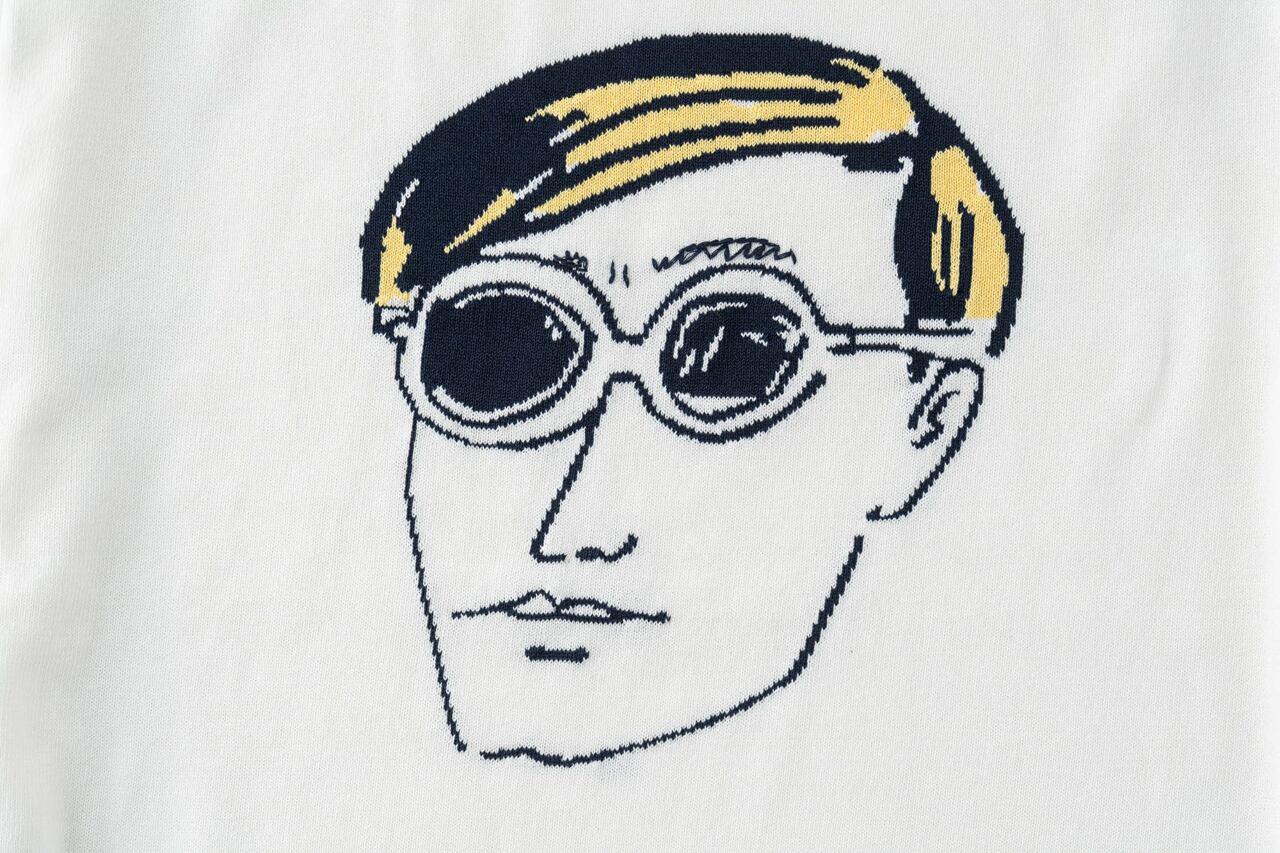 「BE NOT INHOSPITABLE TO STRANGERS」のAndyニットは、ウィットの効いた顔をインターシャと手刺繍で編み込んだコットンニットです。