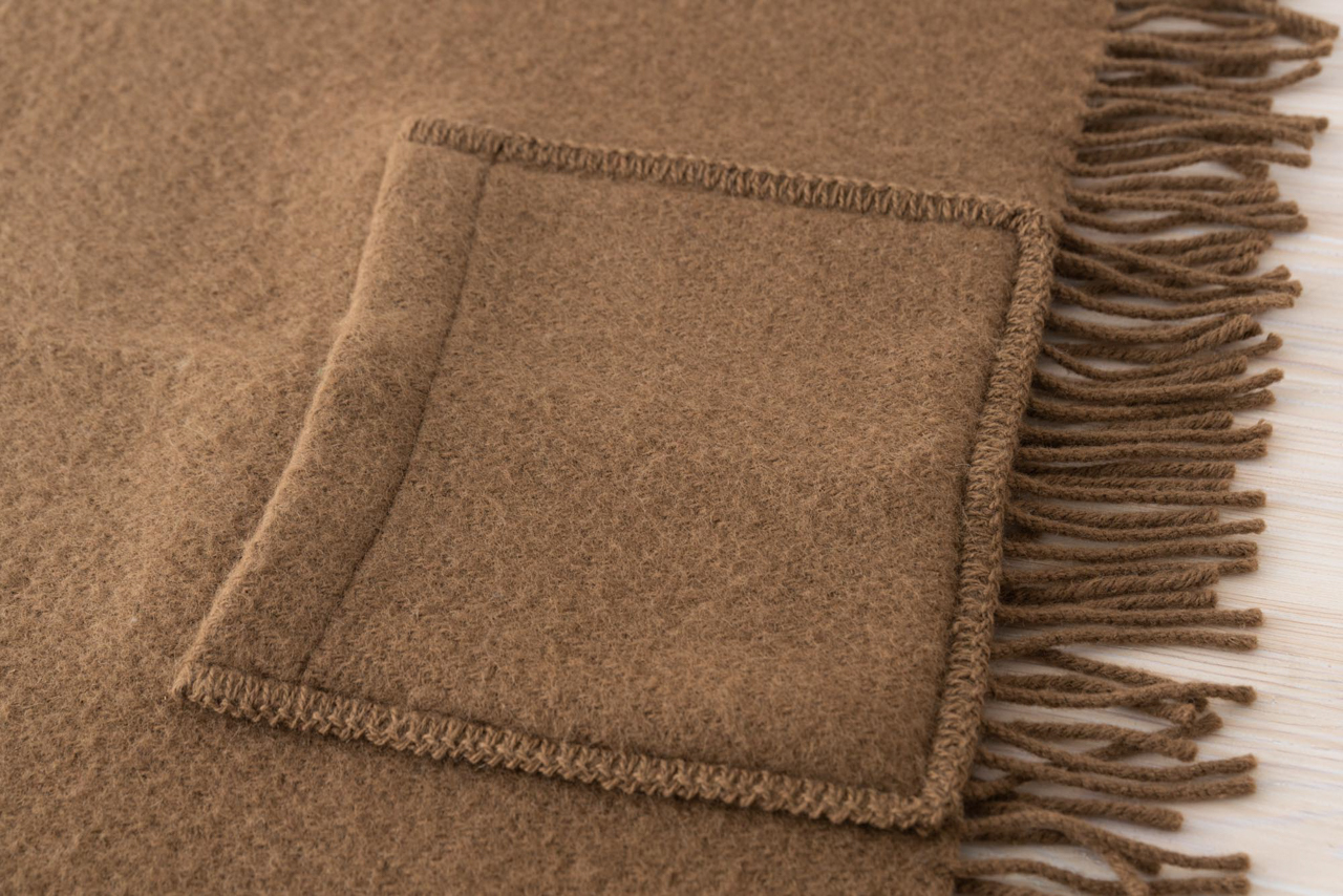 素材は100%ピュアニューウール。羽織るとその軽さと暖かさに驚きます。