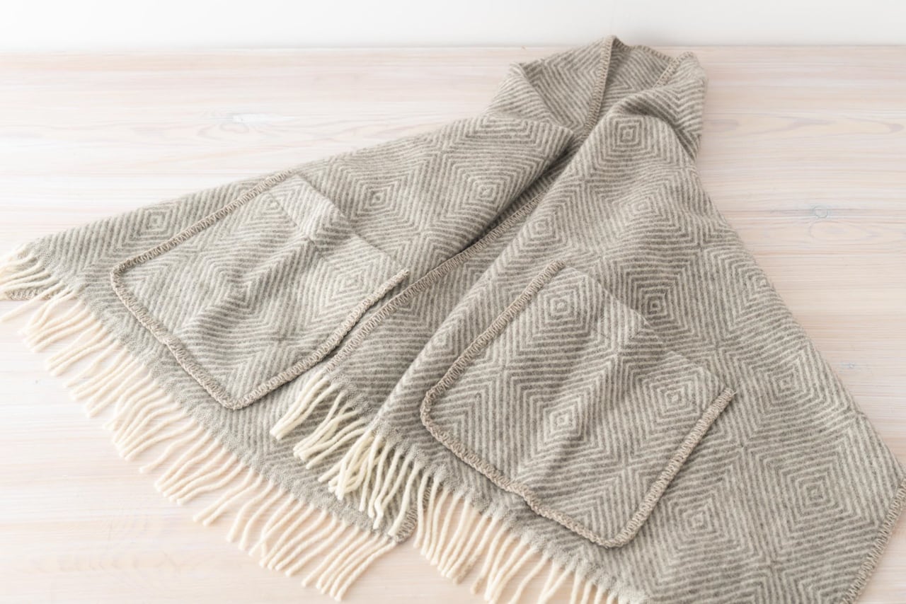 日々の生活に溶け込む手軽さと、羽織るだけでスタイルアップしてくれるファッション性が魅力のポケットショール。「ラプアン カンクリ」のロングセラーアイテムです。
