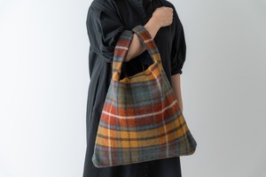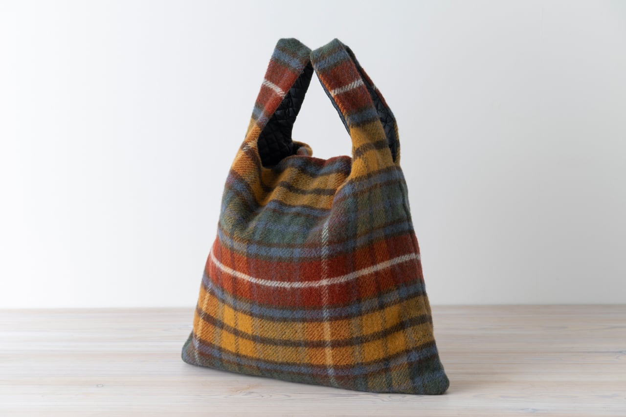 「普段のお買い物にナイロン製のエコバッグを使っていますが、もう少しオシャレなものがないかしら?と思ったのがきっかけでした。秋冬でもオシャレに楽しめるよう、ウール製品でも名高いTWEEDMILL社に別注でつくってしまいました。