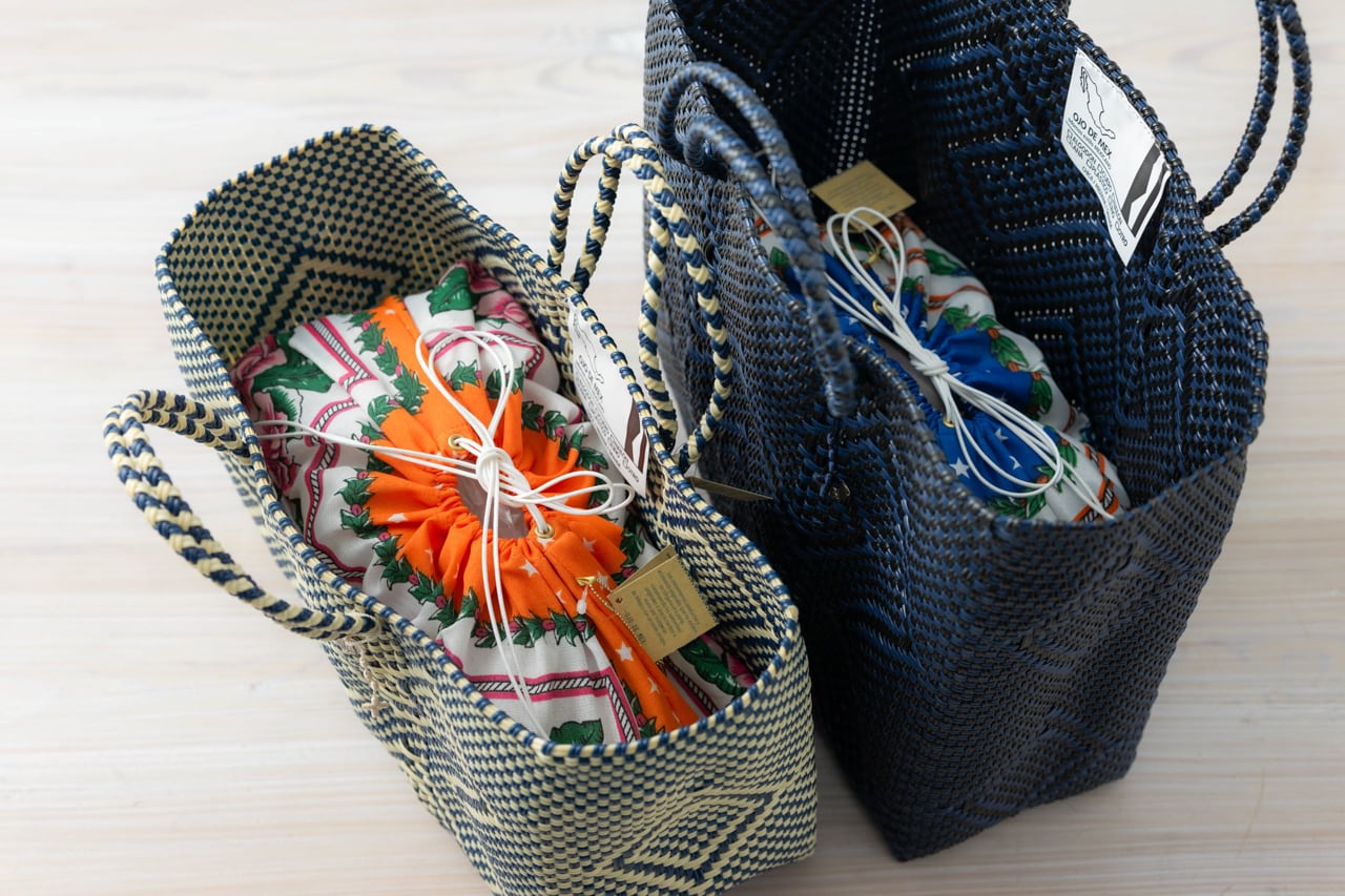 「OJO DE MEX」は、スペイン語で「メキシコの目」という意味。メルカドバッグに(メキシコ製のかごバッグ)使われる不思議な模様のことで、メキシコらしい柄として人気です。