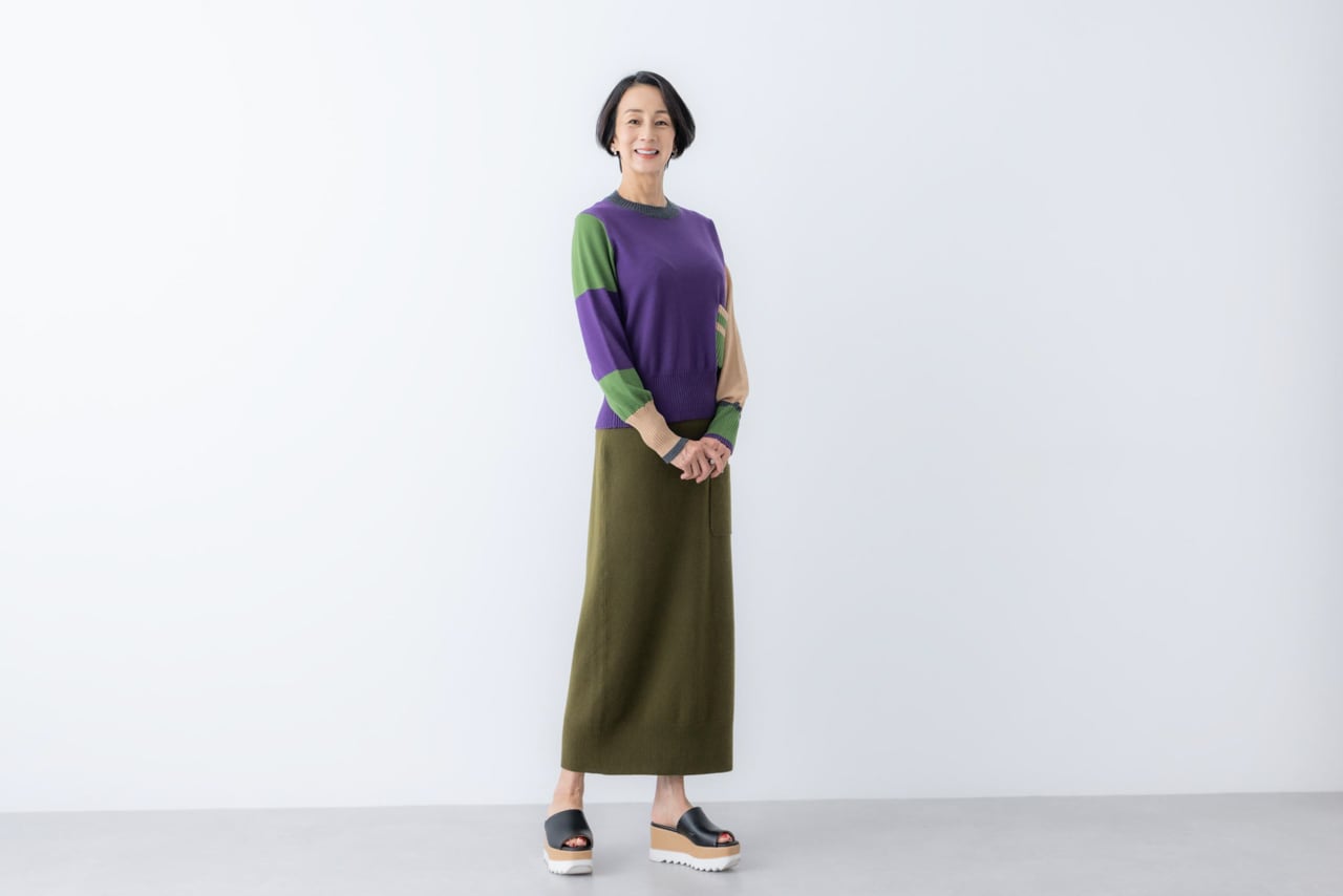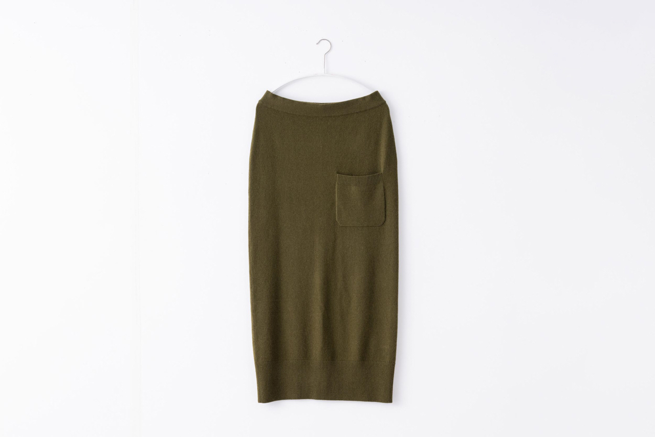 ※江里子さんもカーキのニットスカートは42サイズ着用ですが、ウエストは後ろでつまんでいます。