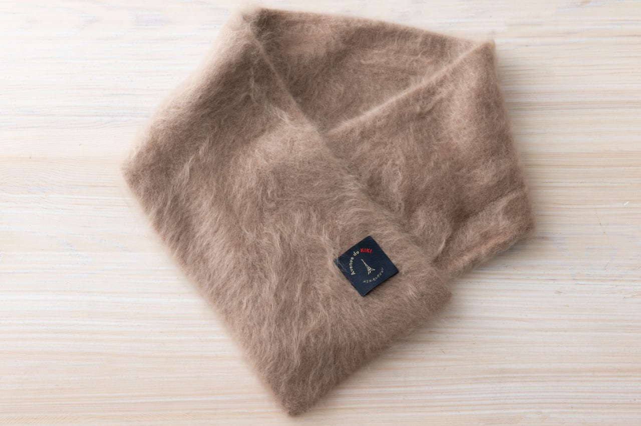 毛足の長いミンク加工のカシミヤは、「軽く、ふわふわ、温かい」を追求。まるでファーのような、肌に直接触れてもチクチクしない心地よい手触りとやさしい温かさのミニマフラーです。