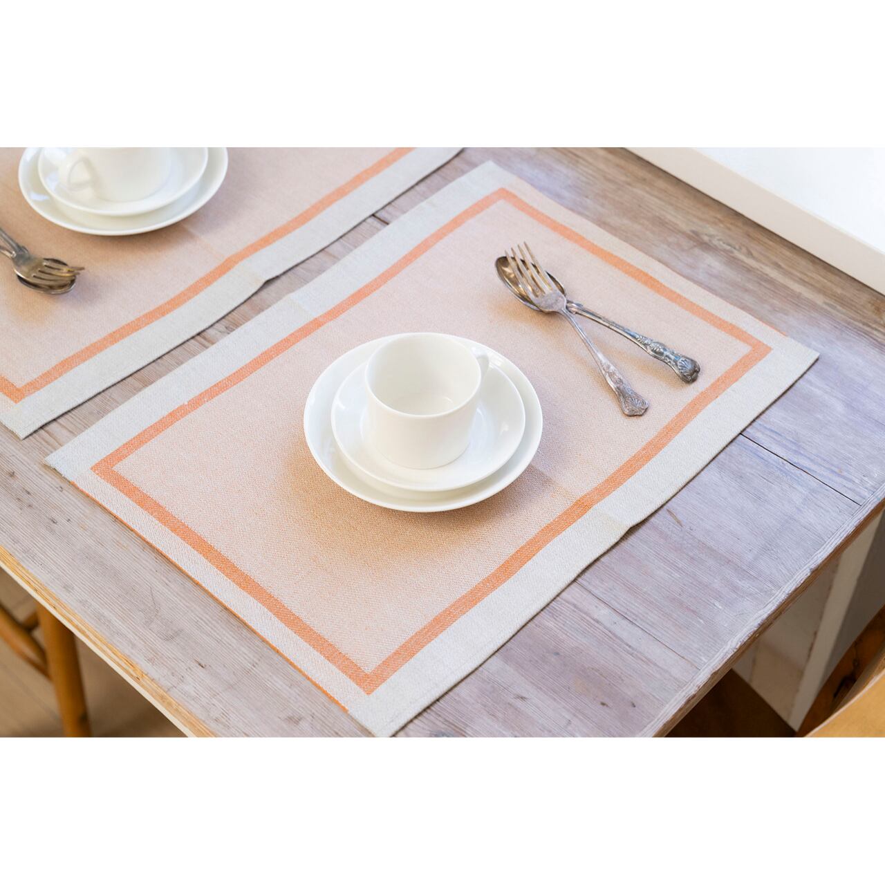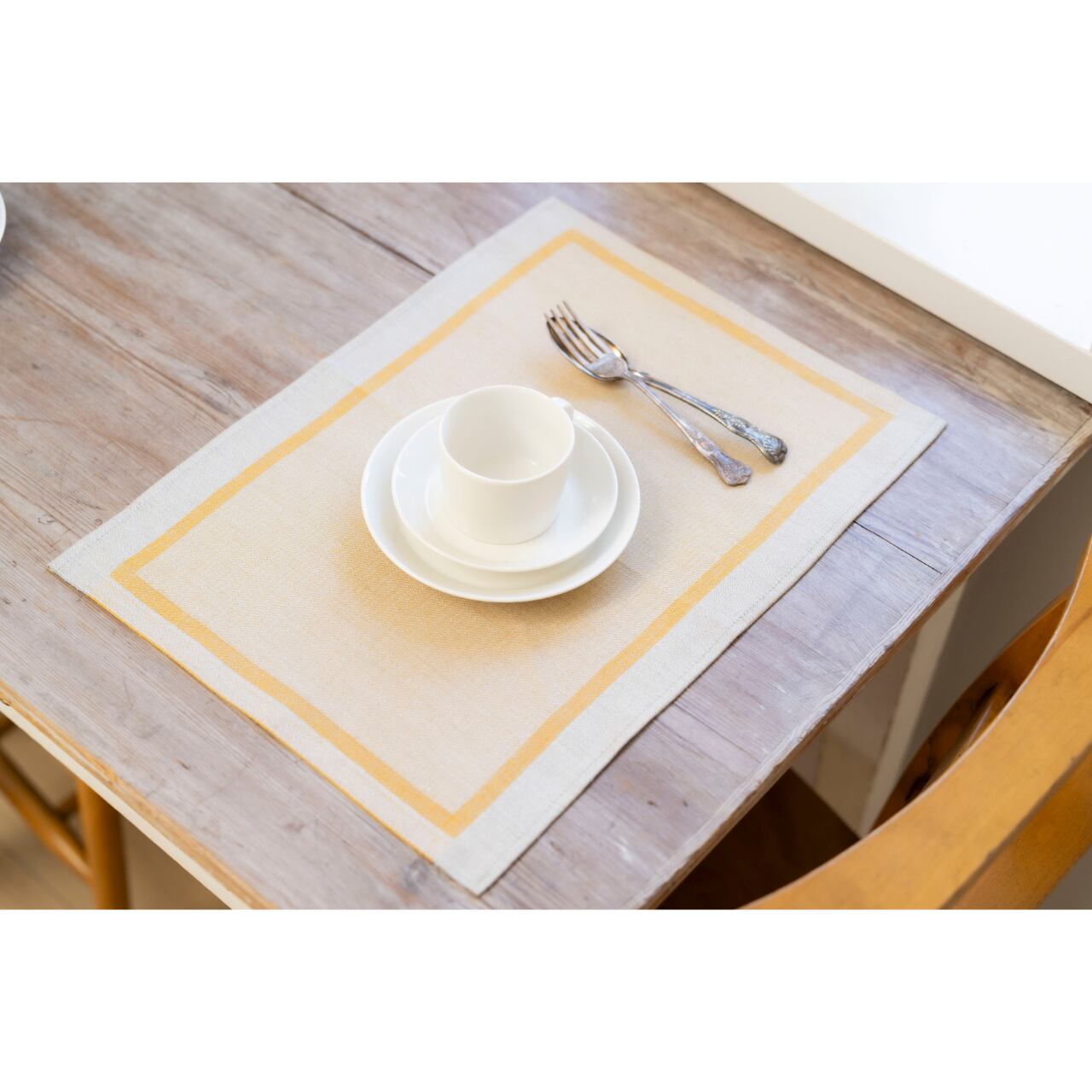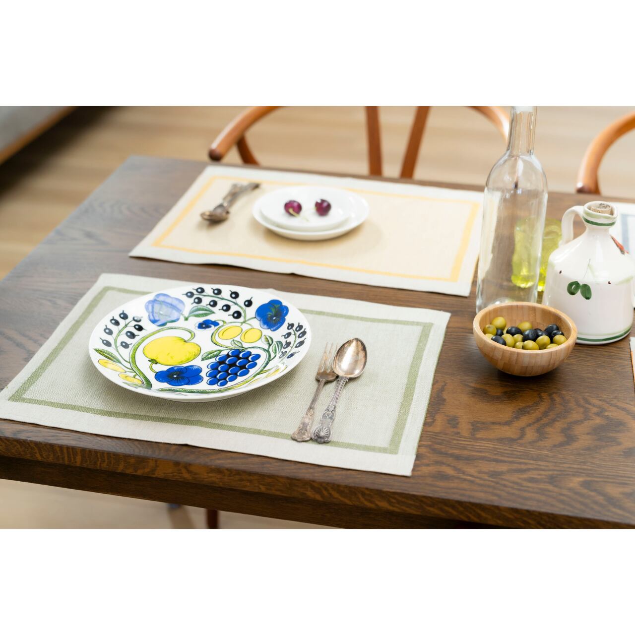 美しい光沢感とアートフレームのようなデザインが、お料理や器を引き立てるリネン100%素材のプレイスマットです。